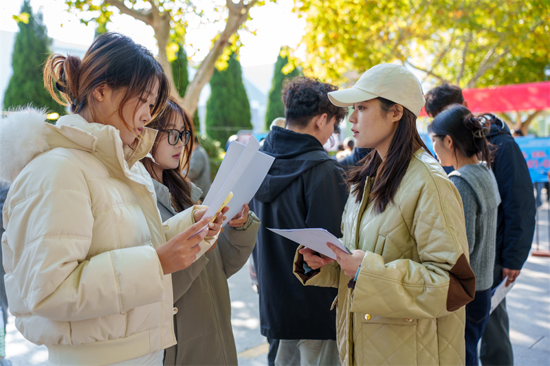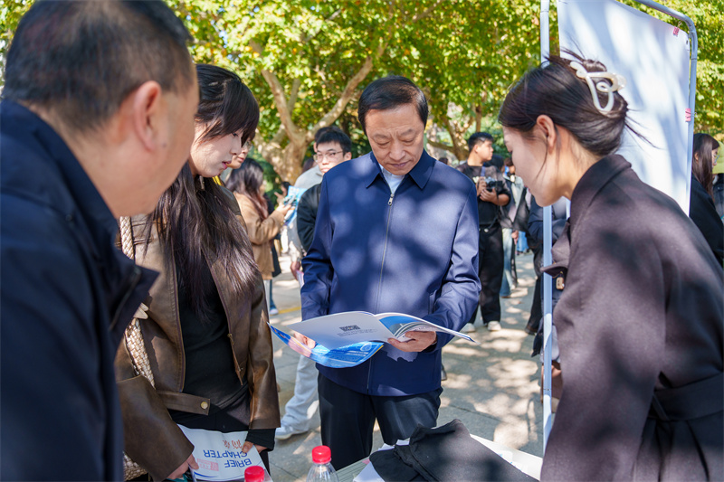 秋阳送暖,才聚日职。10月23日,我校校园至中路上人潮涌动,气氛热烈,2025年秋季大型人才供需双选会在这里举行。来自省内外的177家优质企业“组团”进驻,为我校2026届毕业生带来涵盖智能制造、信息技术、文化旅游等多个领域的8600余个优质岗位。