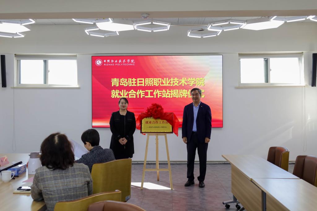 政校企聚力,揭牌启新程。双选会期间,青岛市公共就业和人才服务中心市场服务部部长蒋萍,青岛银燕航空服务有限公司董事长王建芳与党委委员、副院长厉建刚,党委委员、组织人事处处长张家瑜一起,参加了“青岛驻日照职业技术学院就业合作工作站”和“青岛银燕航空服务有限公司驻日照职业技术学院人文与旅游系校企合作工作站” 揭牌仪式。这一做法标志着政、校、企三方合作迈入机制化、常态化的新阶段,将为我校学子通往青岛优质企业开辟更加顺畅的“绿色通道”,为区域人才协同发展注入新动能。